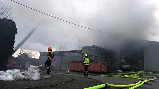 Beim Eintreffen der drei Pflichtbereichsfeuerwehren gab es bereits starke Rauchentwicklung und die Firmenhalle stand im Vollbrand. Durch den umfangreichen Löschangriff der eingesetzten elf Feuerwehren konnte der Brand bereits nach 45 Minuten unter Kontrolle gebracht werden.