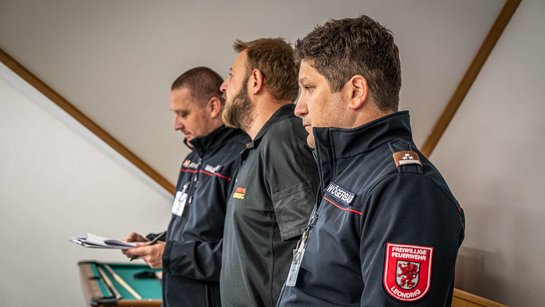 Bei Station 2 "Geräteaufnahme" muss sich innerhalb einer Sollzeit angezogen werden. Von der Schutzjacke bis zur Atemschutzmaske und dem Gerät an sich muss man hier schon bereit für den Übungseinsatz sein.