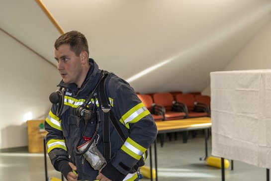 Ziel dieser Leistungsprüfung ist es, das Arbeiten mit dem Atemschutzgerät zu verinnerlichen. Jeder Handgriff muss im Einsatz – ob bei Tag oder Nacht – sicher sitzen, wenn es um den Schutz von Menschenleben geht.