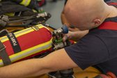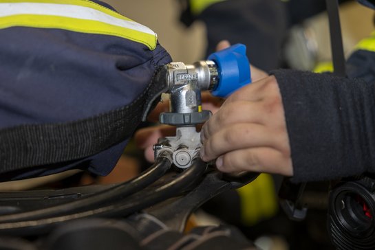 Nach dem Übungseinsatz wird das Gerät fachgerecht abgelegt, überprüft und mit neuen Atemluftflaschen versehen – ebenfalls innerhalb einer Sollzeit. Im Anschluss müssen sämtliche Bauteile erklärt, benannt sowie deren Funktionsweise und Prüfungen erläutert werden.