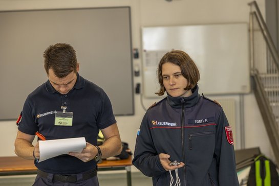 Hier wird das Fachwissen rund um den Atemschutz überprüft. Bei einem schriftlichen Test gilt es, die Kenntnisse unter Beweis zu stellen.