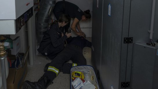Aber eben auch nicht nur unfallbedingte Erstmaßnahmen wurden geschult, sondern auch Ereignisse, mit Atemnot, Herz-Kreislaufproblemen, bis hin zum Atem- oder Kreislaufstillstand, wo die Beatmung und auch die Herzdruckmassage, aber auch der Defibrillator beübt wurden.