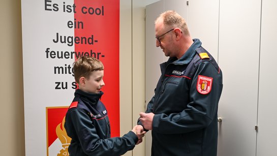 Nach erfolgreichem Abschluss der bestandenen Prüfung wurde jedem Jugendfeuerwehrmitglied vom zuständigen Abschnittsfeuerwehr Kommandanten das Leistungsabzeichen persönlich überreicht.